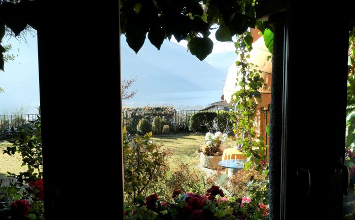 Der separate Schlaftrakt mit Wannenbad und begehbarem Kleiderschrank hat einen eigenen Zugang in den Garten. Wenn Sie sich ein Wannenbad gönnen, können Sie von dort auf den Luganer See schauen.