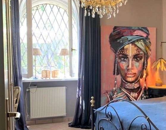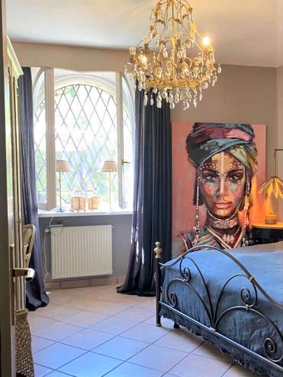 Luxuriöse, stilvolle Inneneinrichtung von Flamant mit vielen antiken Accessoires (Sessel, Spiegel, Kronleuchter)