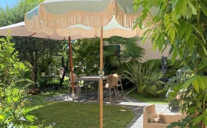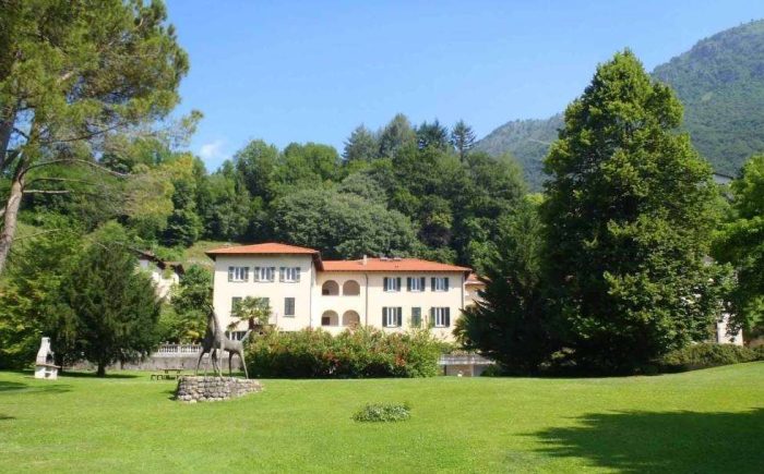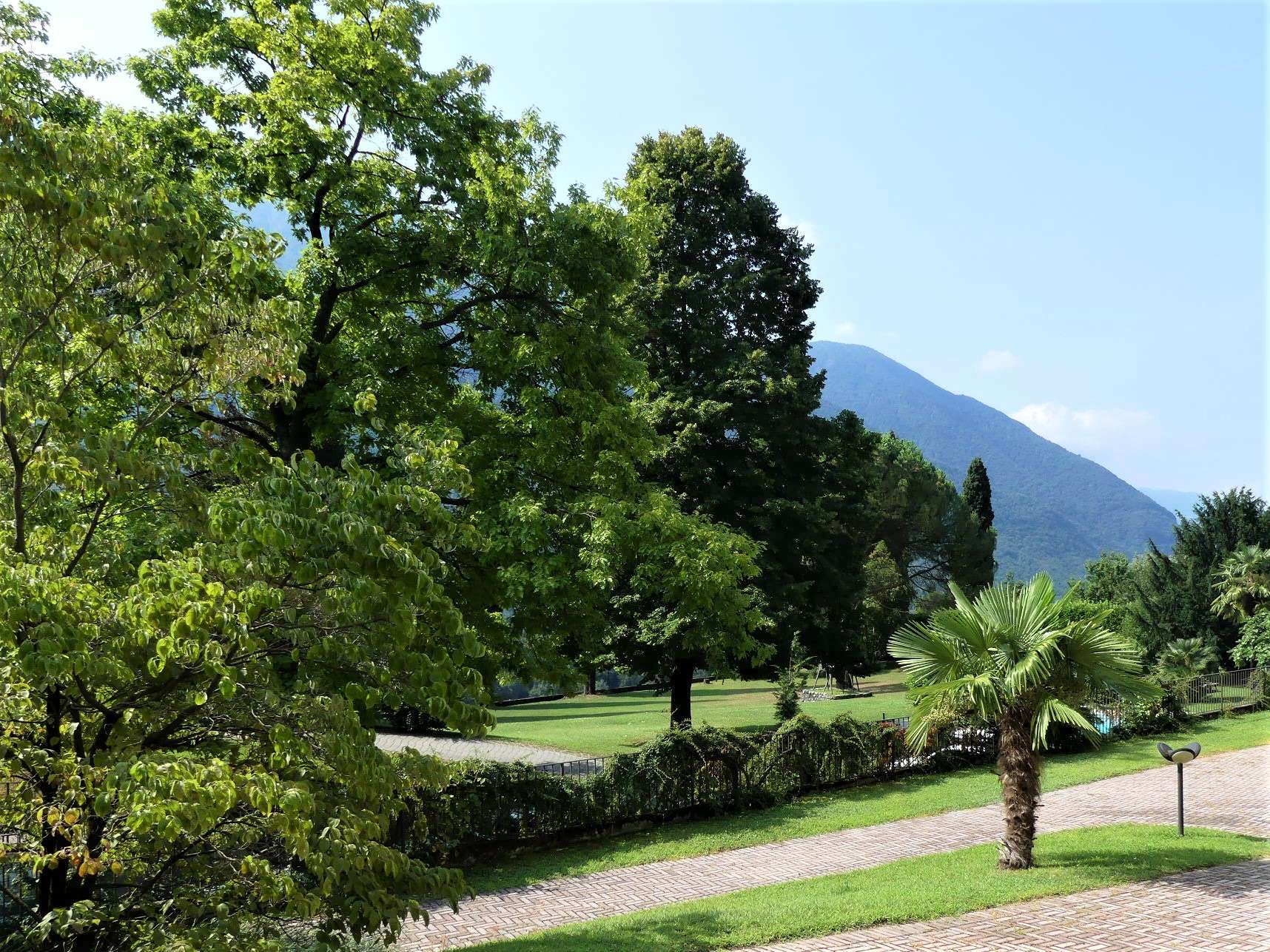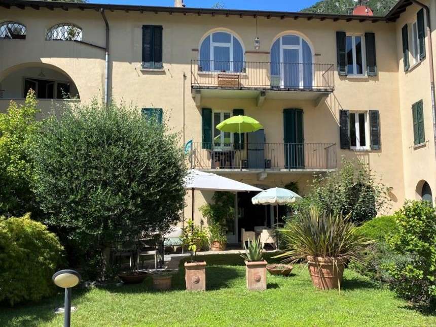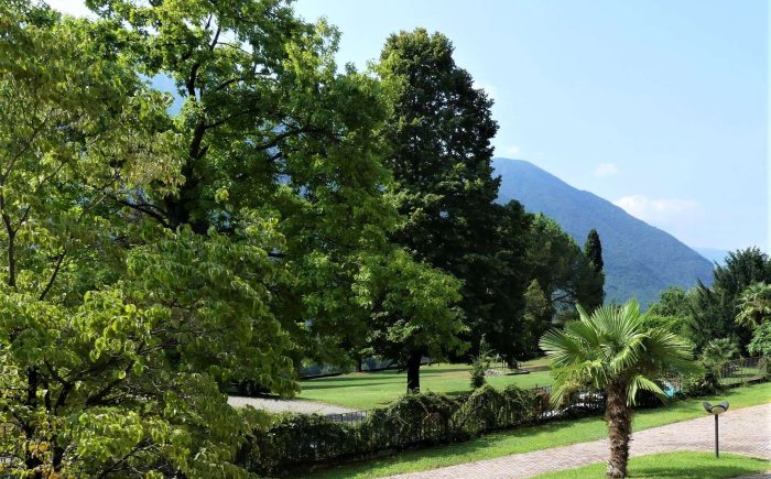 Die zum Verkauf stehende Immobilie ist eingebettet in eine sehr gepflegte, stilvoll angelegte Parkanlage mit beeindruckender Aussicht auf das Naturschutzgebiet des Lago di Piano und den Luganer See.